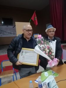 وقبل اختتام  اللقاء تم تقديم شهادة تقديرية للضيف مع باقة ورد عربون محبة وتقدير.
