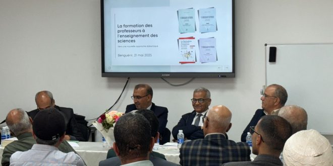 وفي آخر الجلسة تناول الكلمة الاستاذ عبد الجليل معروف (أستاذ التعليم العالي في ديداكتيك العلوم) حيث تطرق الى مشروع التكوين في تدريس العلوم من خلال تلخيص لمحتوى الكتب الأربعة الصادرة عن دار الثقافة الننشر والتوزيع مع الإشارة إلى الكتب الأخرى المجودة قيد الطبع