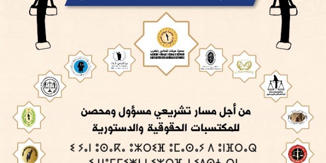 تحت شعار “من أجل مسار تشريعي مسؤول ومحصن للمكتسبات الحقوقية والدستورية “تنظ جمعية هيئات المحامين بالمغرب لقاء وطنيا للمحاماة