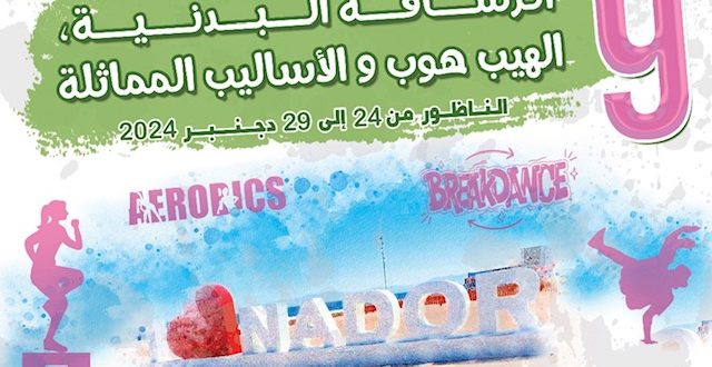 تحتضن مدينة الناظور النسخة التاسعـة من مهرجـــان الرياضــات الوثيــرية والرشـاقة البدنيـــة الهيـب هـوب والأساليـب المماثلـة، بمدينة الناظـــــور خلال الفتـرة الممتدة من 24 إلى 29 دجنبــر 2024.