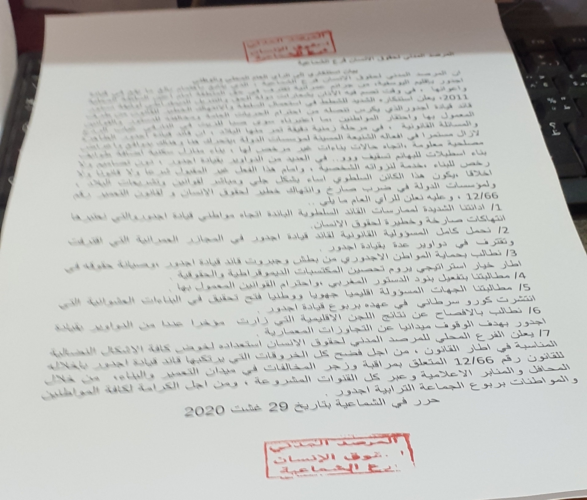 لحقوق الانسان و لقانون التعمير رقم 66/12 ، وعليه نعلن للرأي العام ما يلي ..
