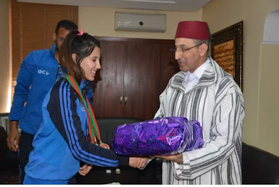 بالصور..عامل اقليم اليوسفية يستقبل البطلة سكينة الصاحب بعد تتويجها بعدة ميداليات وينوه بالمجهودات التي يقوم بها اطر ومسيري ومدربي نادي اولمبيك اليوسفية..