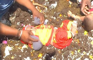 .آباء في الهند يلقون أبناءهم في روث الأبقار لجلب الحظ