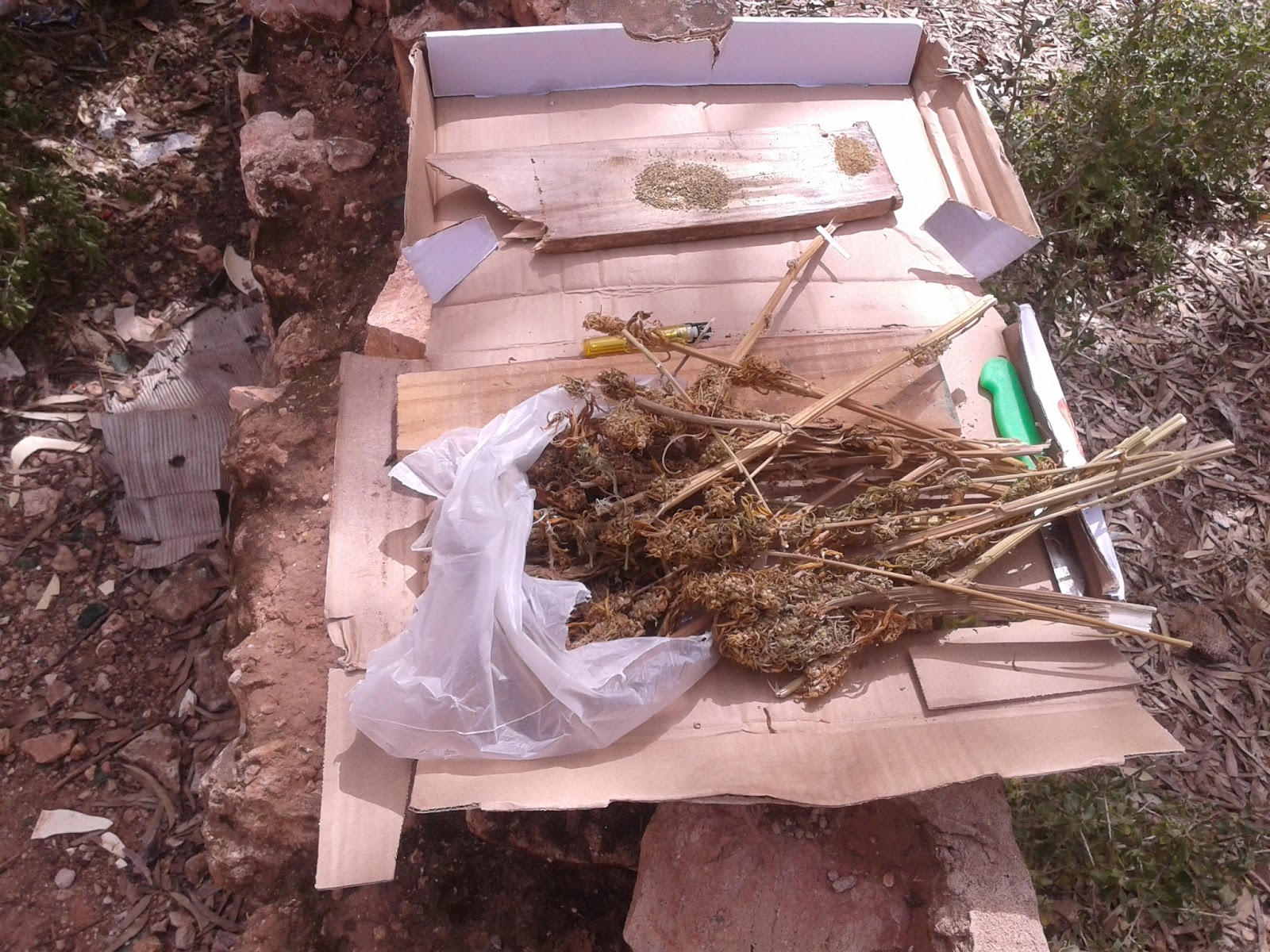 المخدرات عبارة عن رزم من القنب الهندي ومستلزمات عملية قطع سنابل الكيف ..